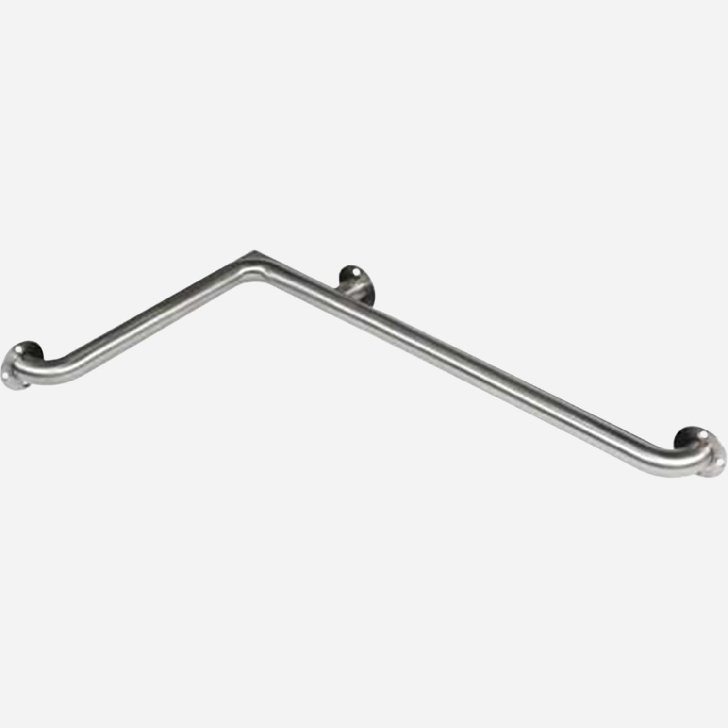 The grab bar is fabricated with a 1-1/2" (38 mm) stainless steel tube; Three 3" (76 mm) diameter flanges assist in the mounting onto the two walls; a flat closure strip with a mounting flange is welded onto the tube.
