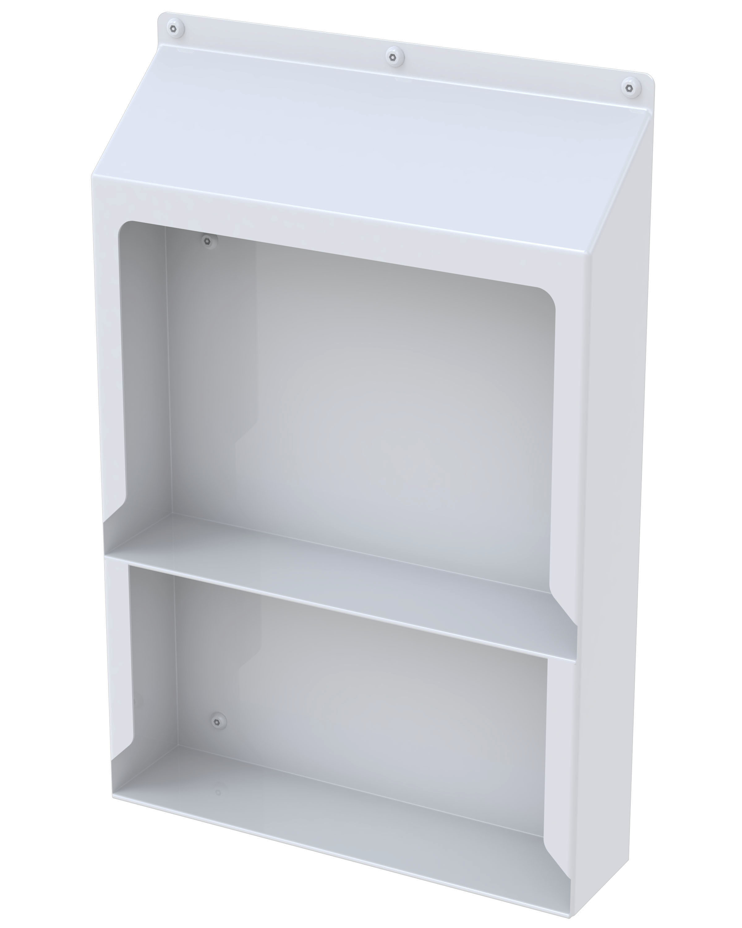 This two-shelf stainless steel Vanity Shelf is designed to be used in place of medicine cabinets where concealment of items is not recommended. The Sloping Top makes this item ideal for ligature resistant applications. The open shelf design is easily inspected preventing the concealment of contraband.
