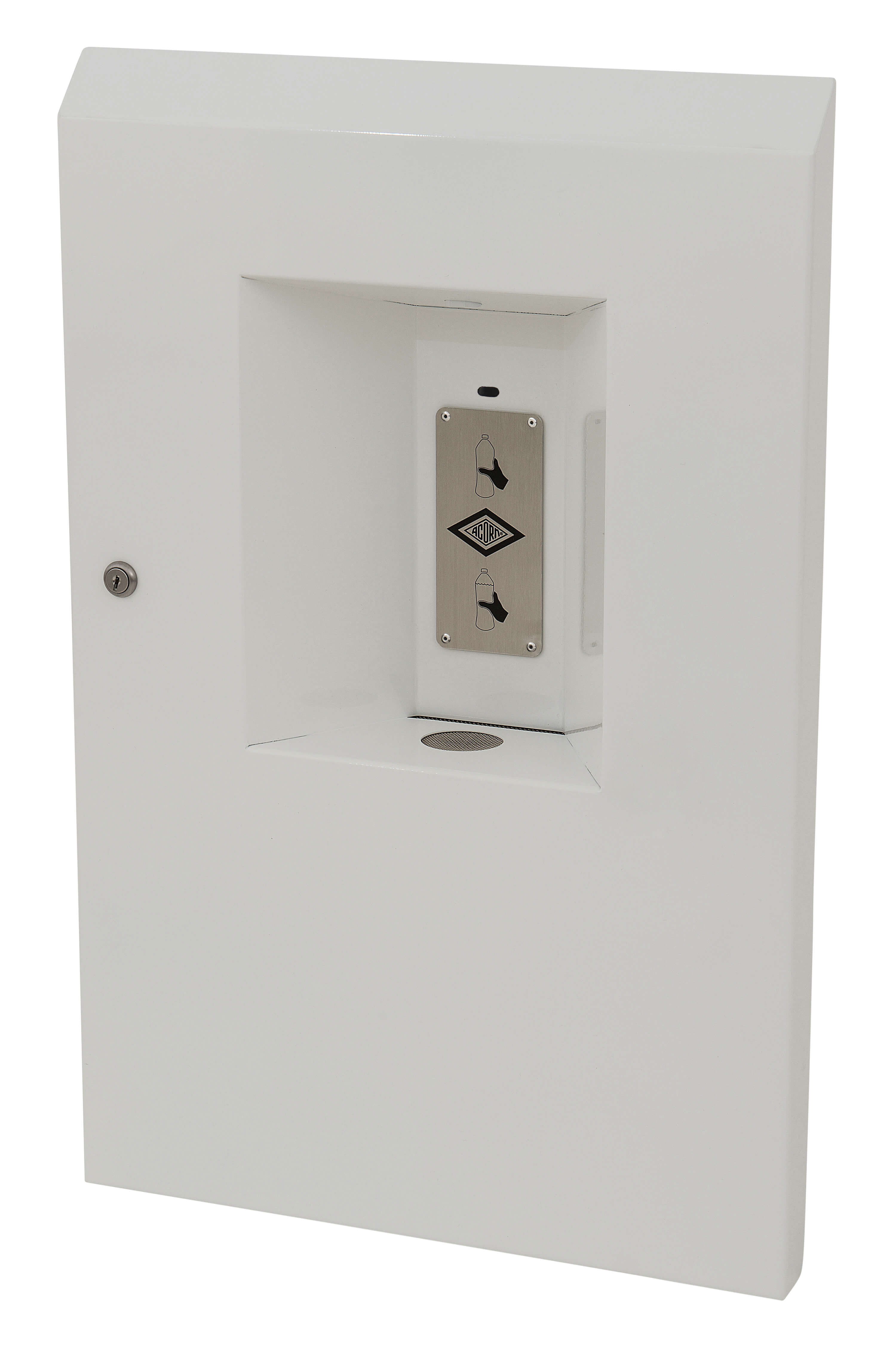 The unit features a key latch and a hinged door for simple maintenance access. The WHBF4 can be mounted in a 4-inch or larger wall space for simple installation and blends into virtually any environment. The WHBF4 water filling station is fabricated from type 304 stainless steel with a white powder coat finish.