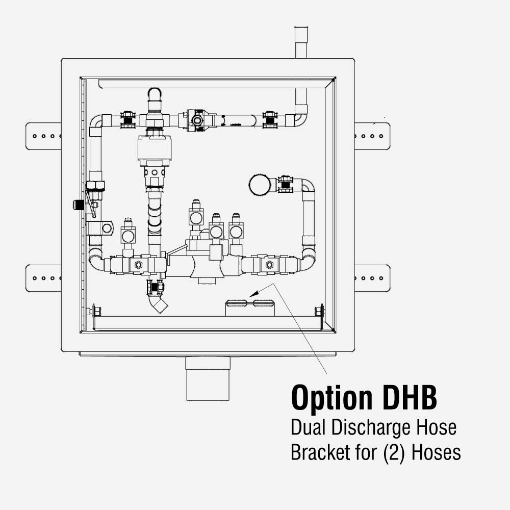 This option -DHB provides a bracket for two discharge hoses. Typically the 8193 is supplied with a bracke holding one discharge hose. The brackets feature grommets which protects the discharge hose.