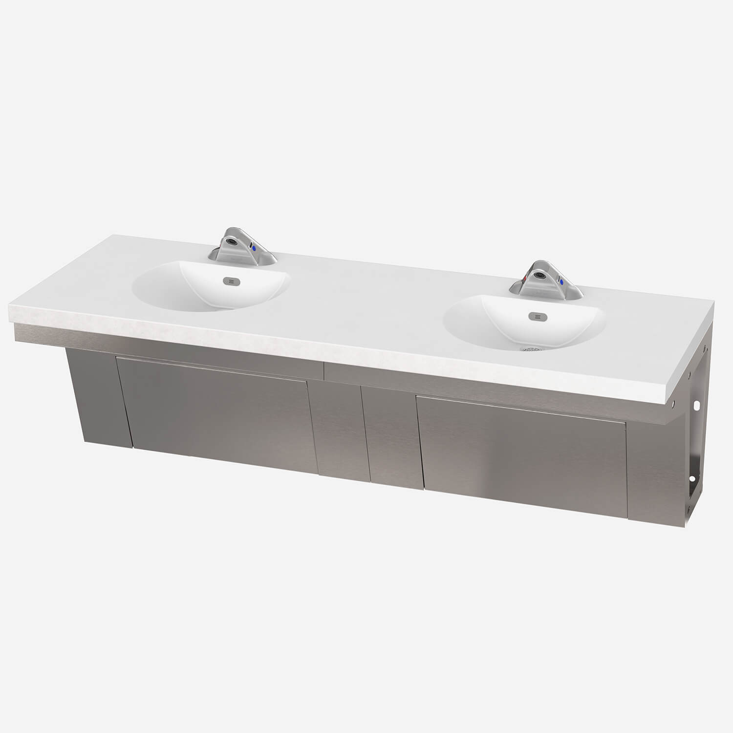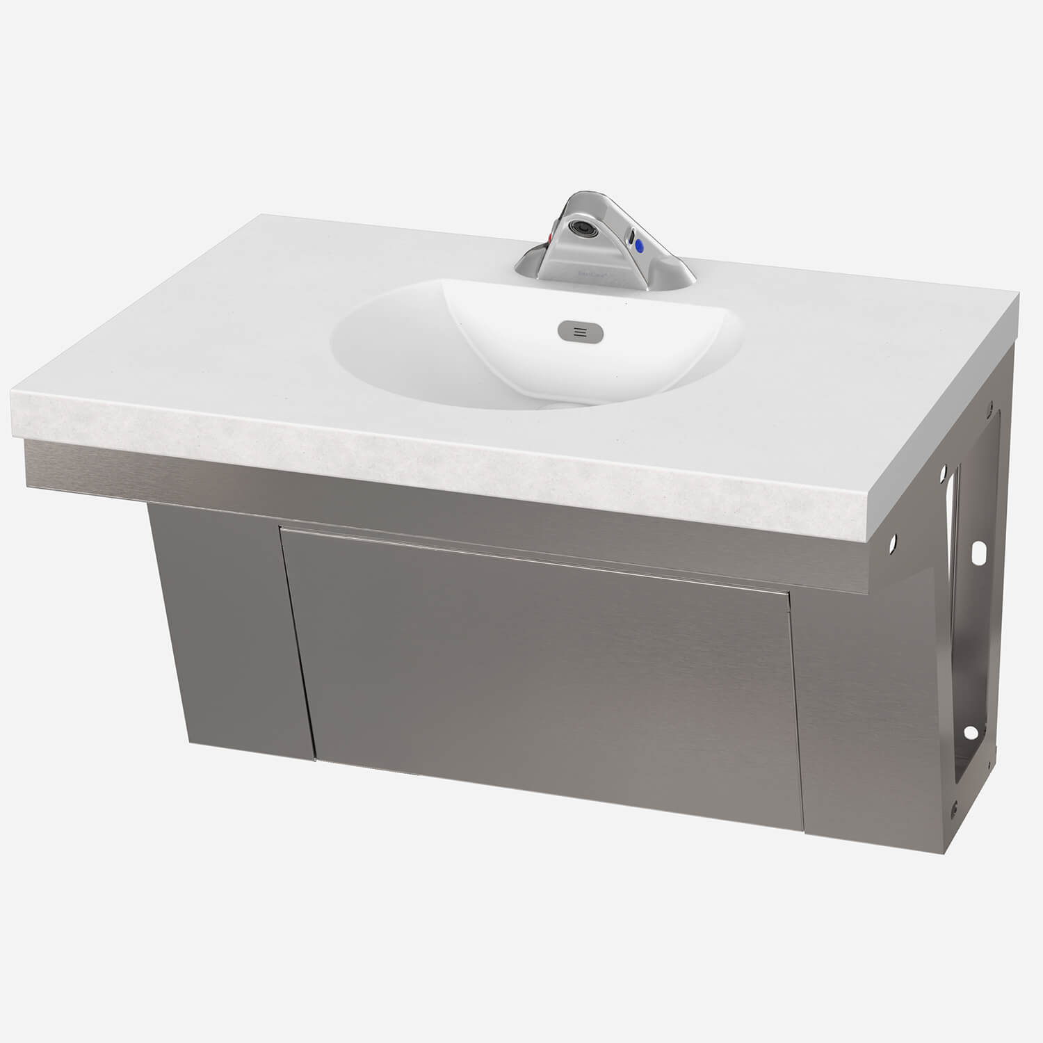 This provides the bottom enclosure of the basin to be #4 Finish Stainless Steel whereas the enclosure is typically provided with a white powder coating.