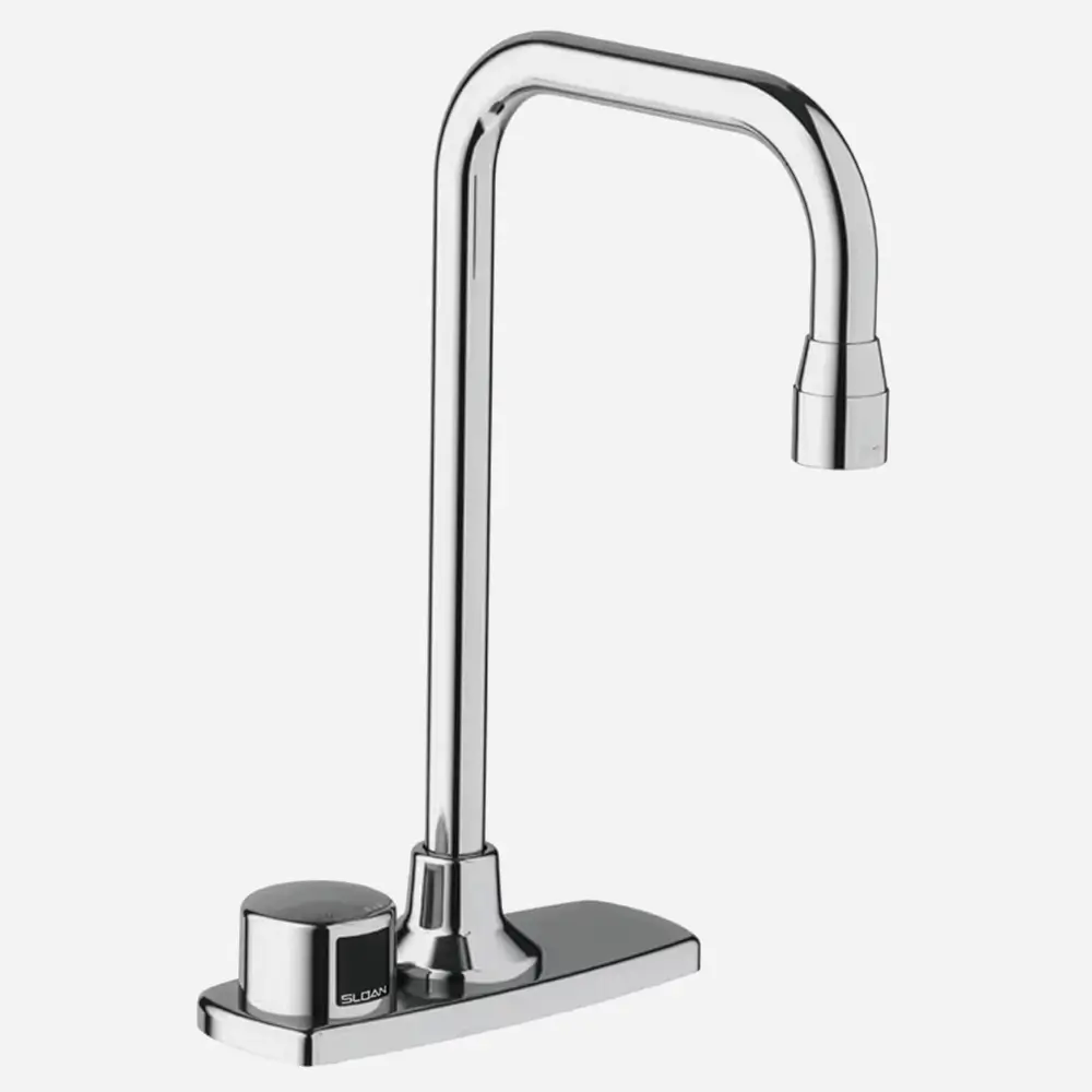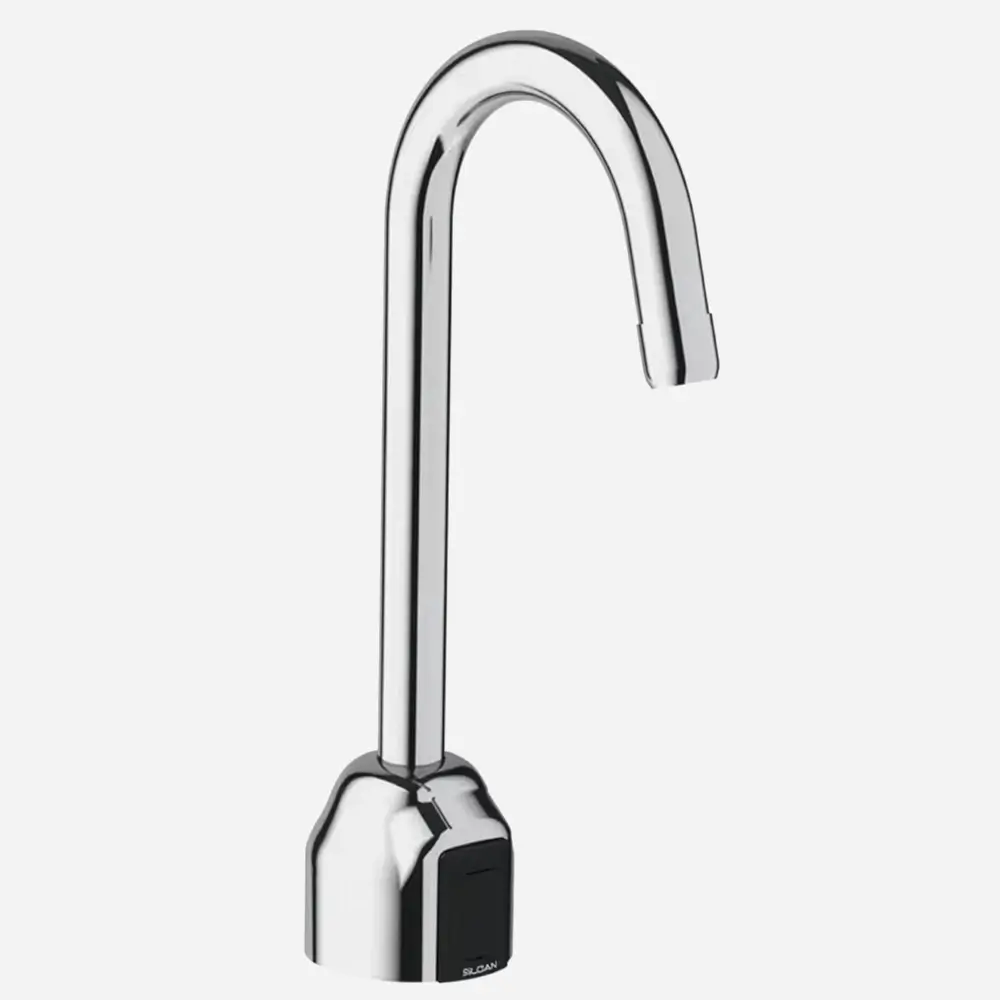 ADA Compliant Electronic Sensor Faucet with polished chrome Gooseneck Spout. Self-adapting Sensor, Auto shut-off feature. Cast brass body, quick-connect fittings, twist-off/shut-off solenoid assembly. The faucet is typically available for Patient Care Units.