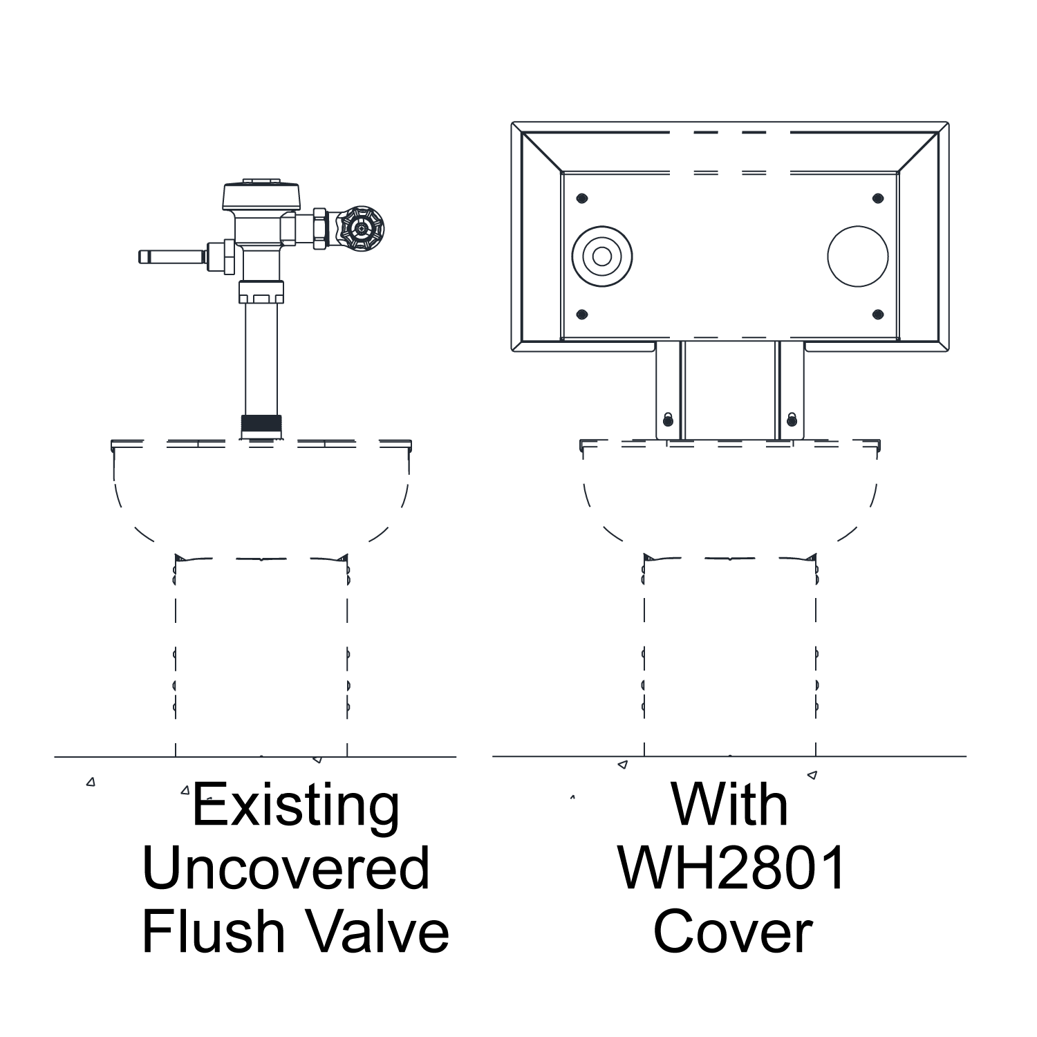 Whitehall provides this BestCare® Ligature-Resistant Cover to conceal an existing exposed top supply flush valve typically for a top spud toilet. An adjustable pushbutton mechanism is provided to convert lever operation on the flush valve. The cover is in two parts, adjusting to the dimensions necessary for various flush valves.