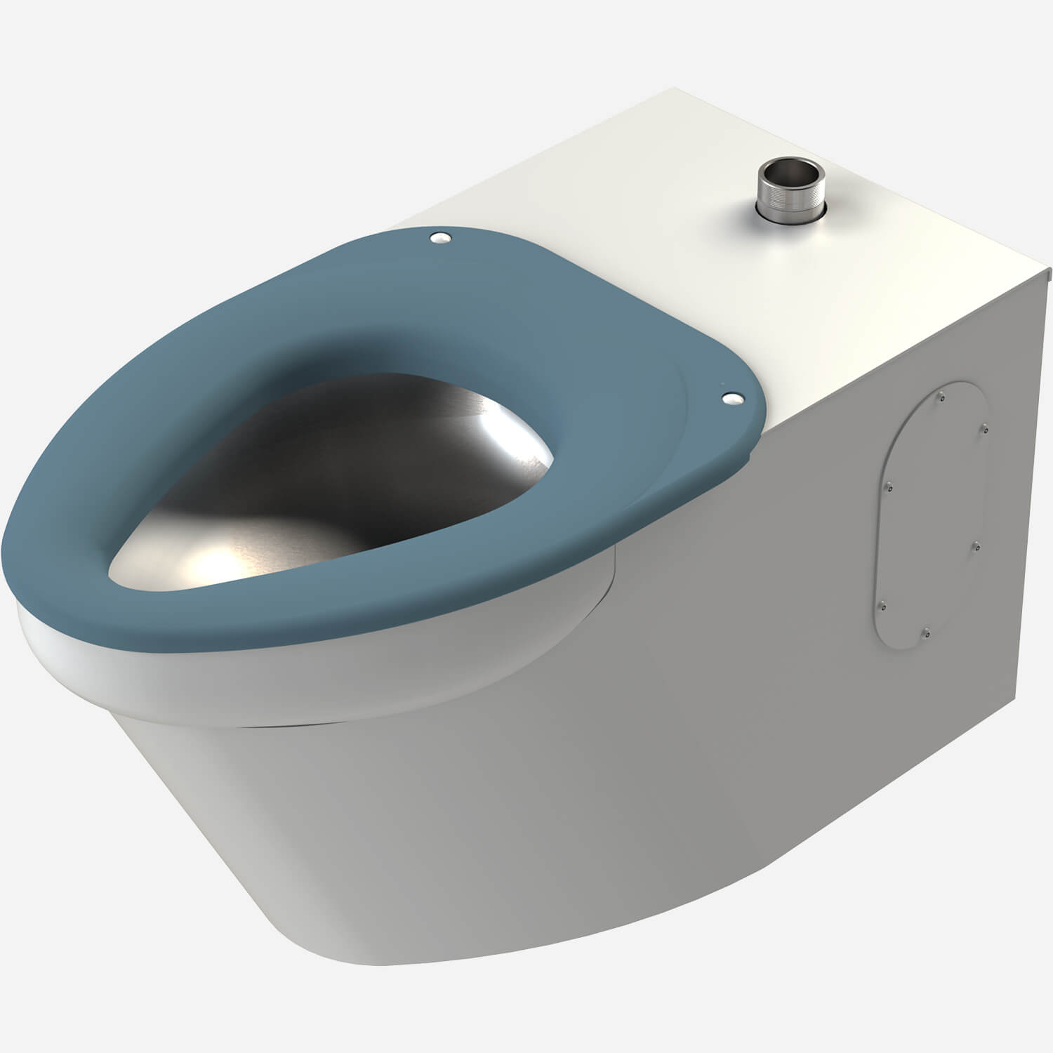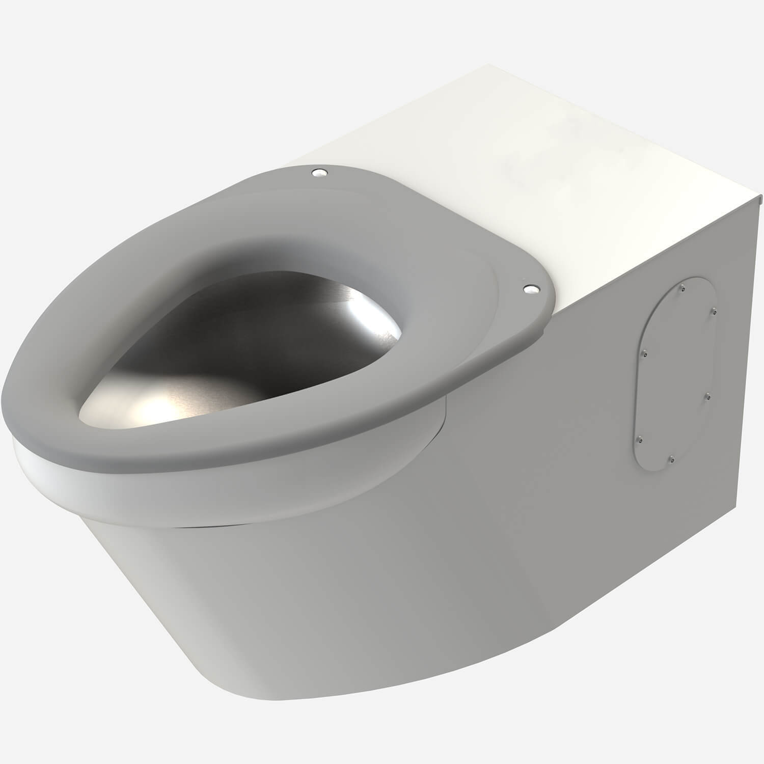 All toilets in this series are Ligature-Resistant, Stainless Steel, Siphon Jet Type, and on-floor design with wall waste. The exterior of the toilet is powder-coated Enviro-Glaze® Snow White (the toilet bowl is left satin finish stainless steel). Gray WH-LRSC-GRAY Ligature-Resistant ABS Toilet Seat Cover is supplied - other seat color choices are available.