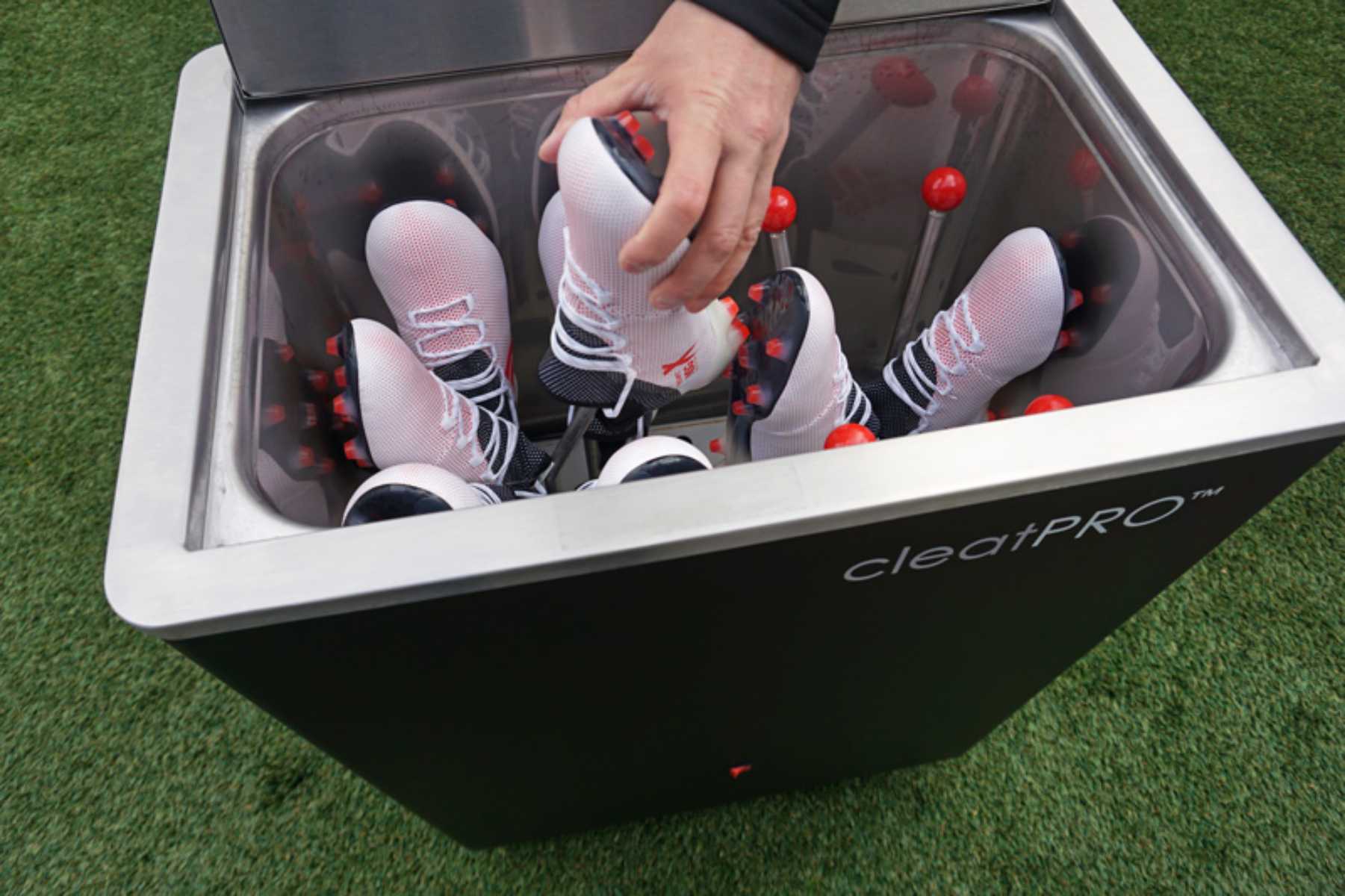 Steaming time ranges between 2-30 minutes based on the athlete's preference. cleatPRO® can be used to steam and contour the fit of new unworn cleats as well as for daily steaming of pre-worn cleats.
