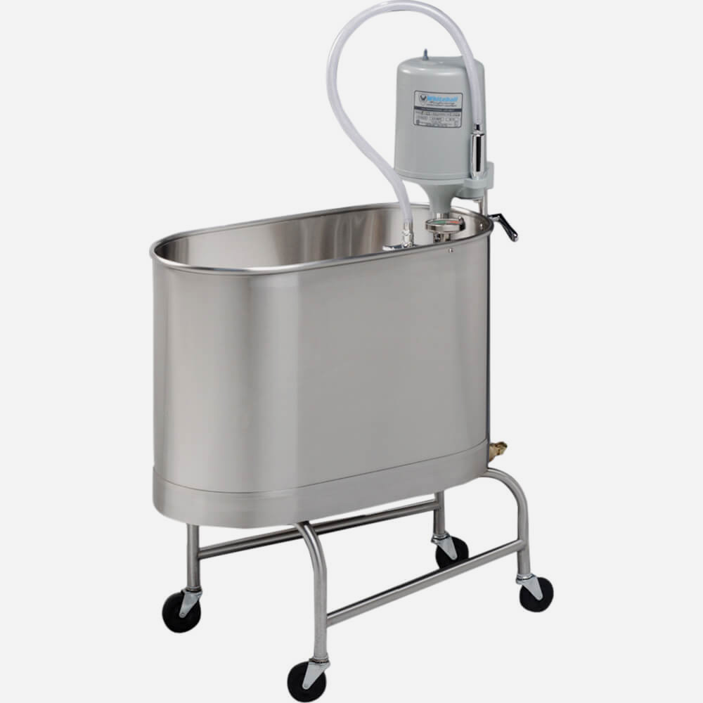 The WHP-10-MU mobile whirlpool has an undercarriage of heavy-duty construction and fixed height which raises the tank for use on the extremities.