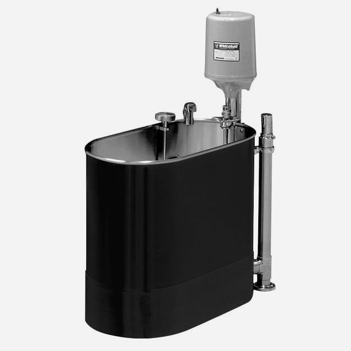 Whitehall® whirlpools can function as both whirlpool tubs and a cold tank by removing the turbine assembly and thermometer when cold temperature is required. The turbine assembly and thermometer can be replaced to covert the tank back to warm-water whirlpool use.