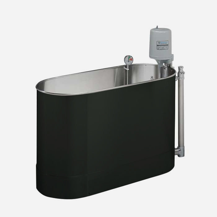 Whitehall® whirlpools can function as both whirlpool tubs and a cold tank by removing the turbine assembly and thermometer when cold temperature is required. The turbine assembly and thermometer can be replaced to covert the tank back to warm-water whirlpool use.