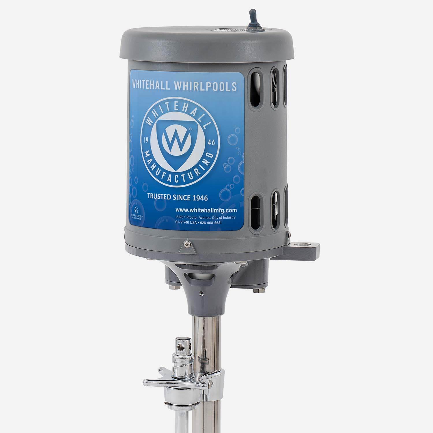 Stationary turbines provide agitation but do not reverse to evacuate water. The turbine features a powerful and quiet half horsepower pump jet motor. It has an easy vertical adjustment of height and direction of agitation. Water can be focused precisely on a specific area of the body. The turbine has a durable ABS plastic shell and lifetime-sealed bearings, ensuring product longevity.