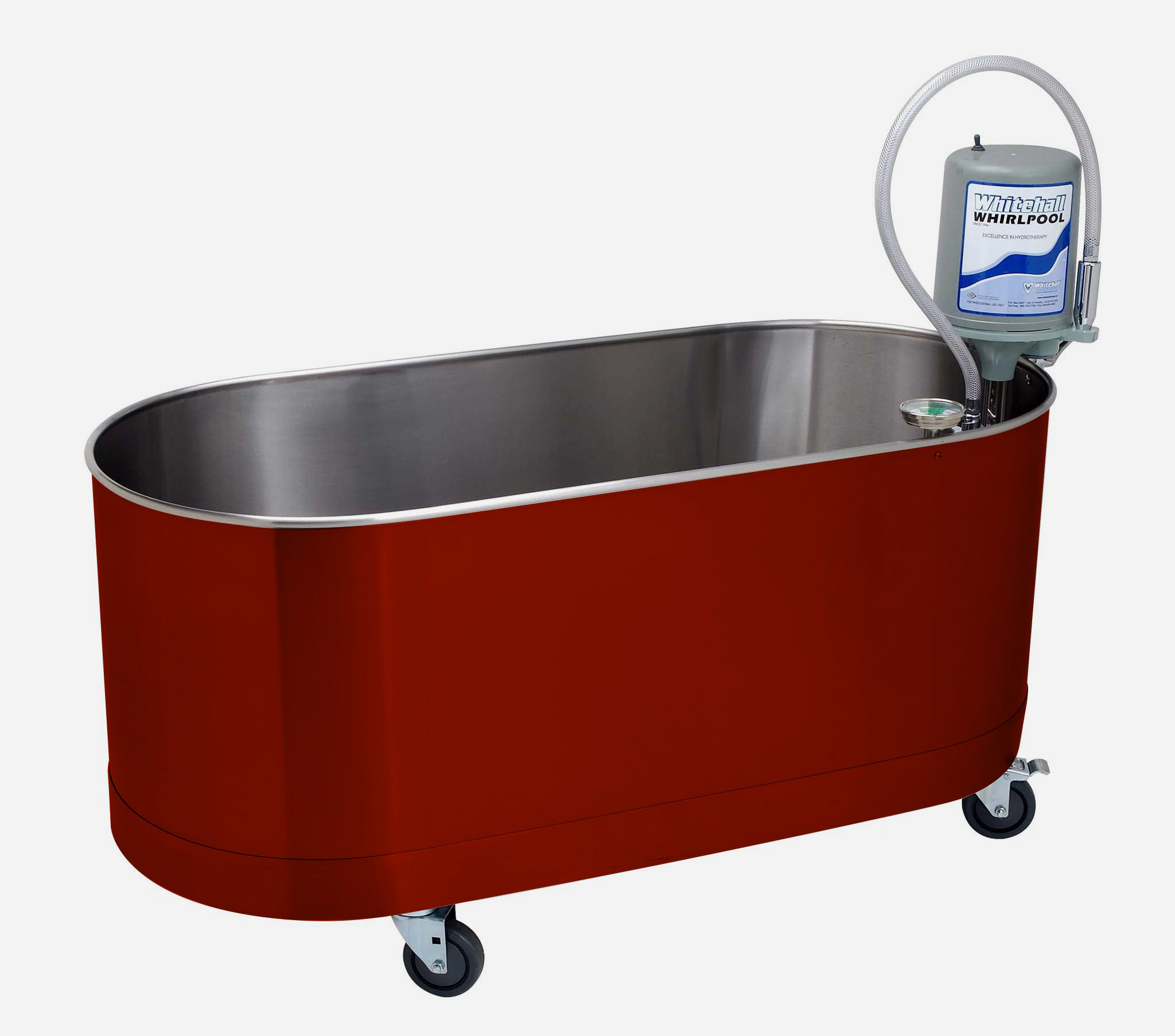 Whitehall® whirlpools can function as both whirlpool tubs and a cold tank by removing the turbine assembly and thermometer when cold temperature is required. The turbine assembly and thermometer can be replaced to covert the tank back to warm-water whirlpool use.